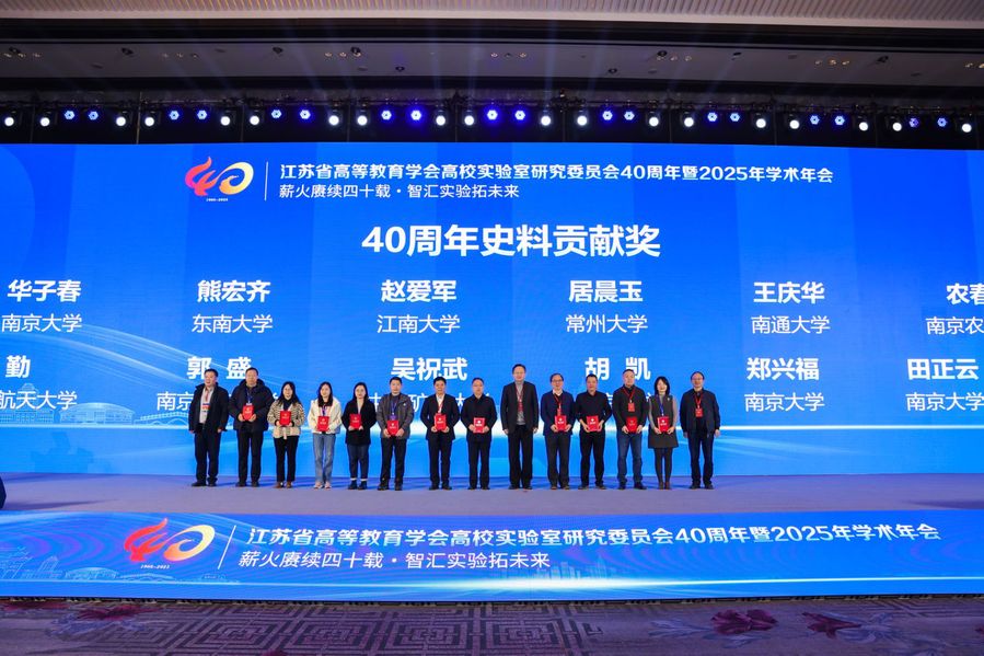 会上,我校荣获“江苏省实验室研究会40周年优秀‘史料提供者’”奖,以表彰我校在实验室历史资料整理与提供方面所作出的突出贡献。
